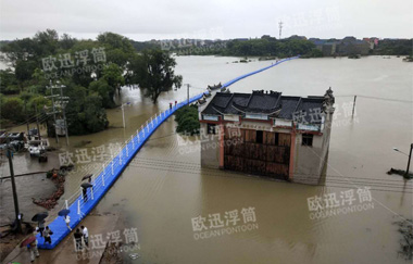 聚焦江西抗洪:鄱陽蓮湖鄉龍口村搭建浮橋通行